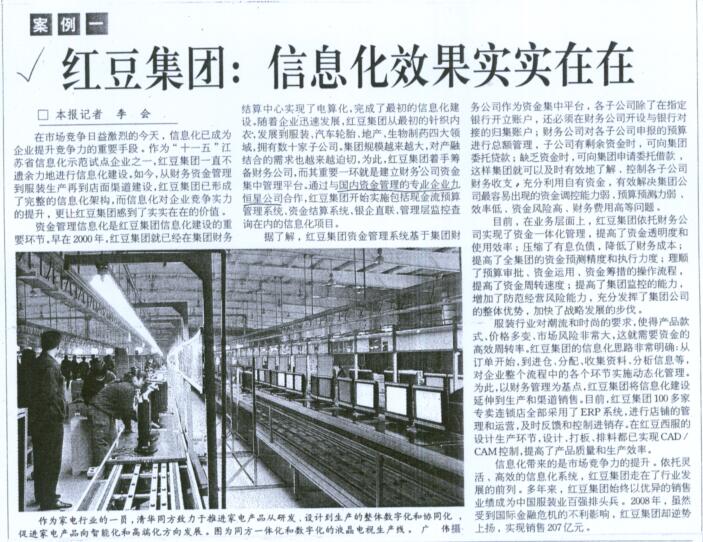 《红豆集团:信息化效果实实在在》——《经济日报》