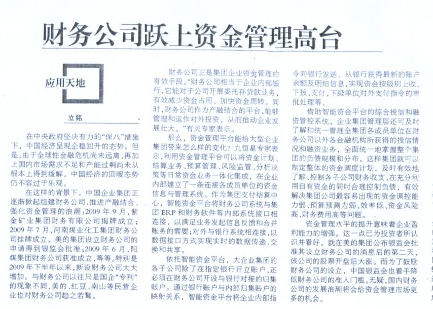 《财务公司跃上资金管理高台》——《金融时报》