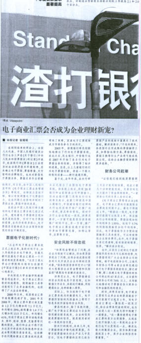 《电子商业汇票会否成为企业理财新宠》——《中国会计报》