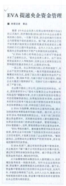 《EVA提速央企资金管理》——《国际商报》