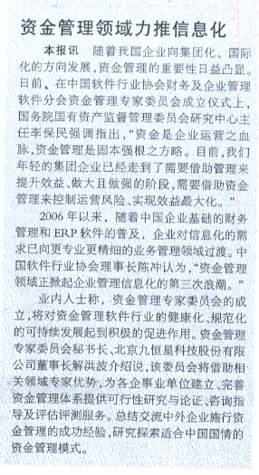 《资金管理领域力推信息化》——《国际商报》