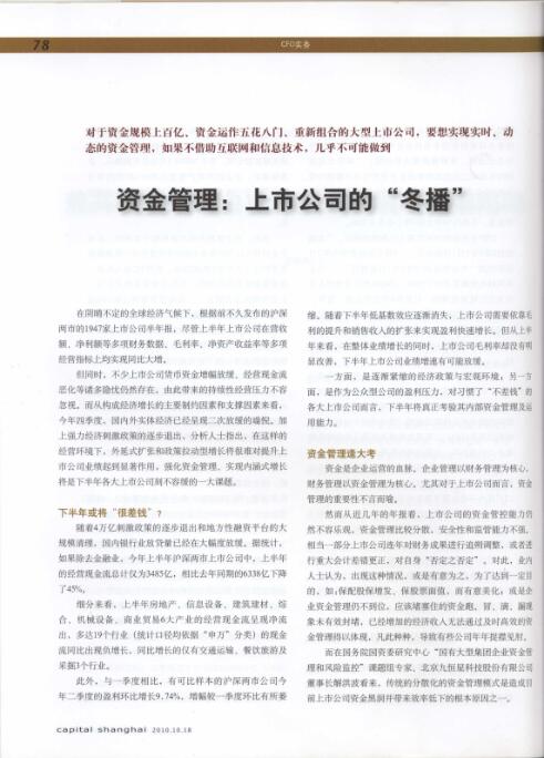 《资金管理:上市公司的“冬播”》——《上海国资》