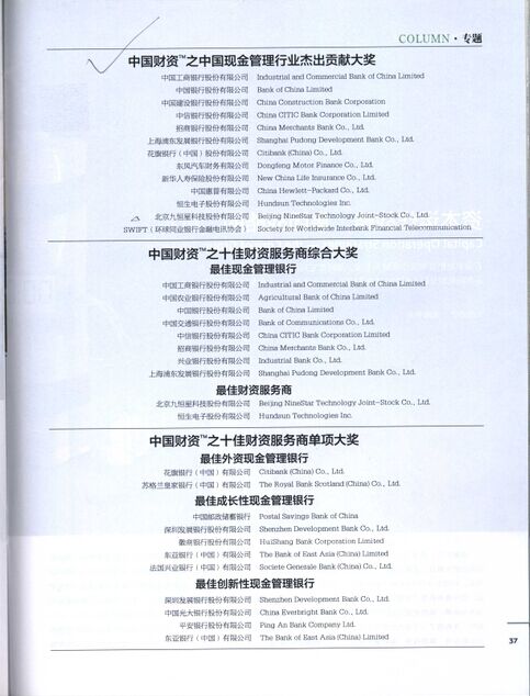 案例赏析—中国财资之中国现金管理行业杰出贡献大奖(财资中国)