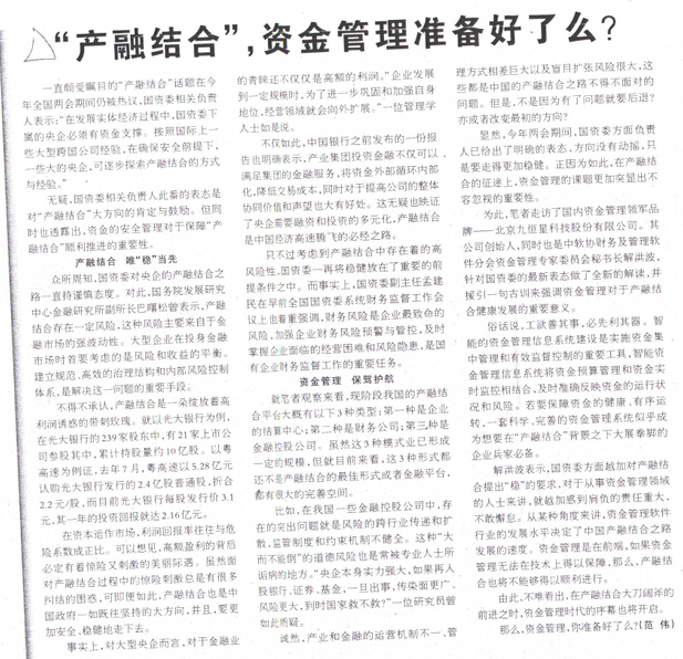 案例赏析—“产融结合”,资金管理准备好了么?(中国贸易报)
