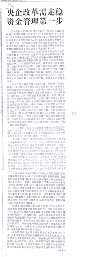 案例赏析—资央企改革需走稳资金管理第一步(四川经济日报)
