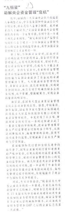 案例赏析—“九恒星”助解央企资金管理“危机”(河北经济日报)