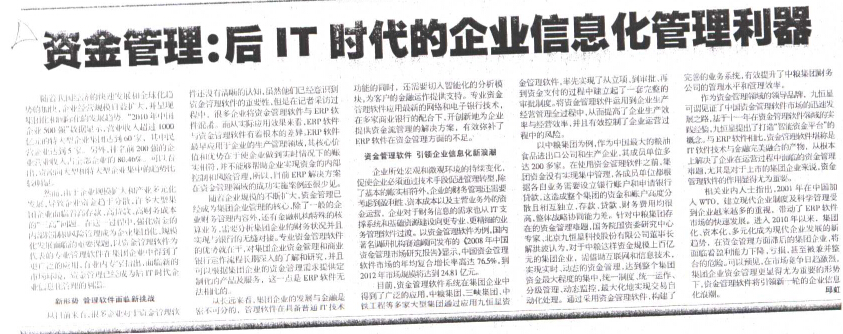 案例赏析—资金管理:后IT时代的企业信息化管理利器(西南商报)