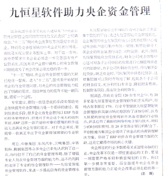 案例赏析—九恒星软件助力央企资金管理(中国商报)