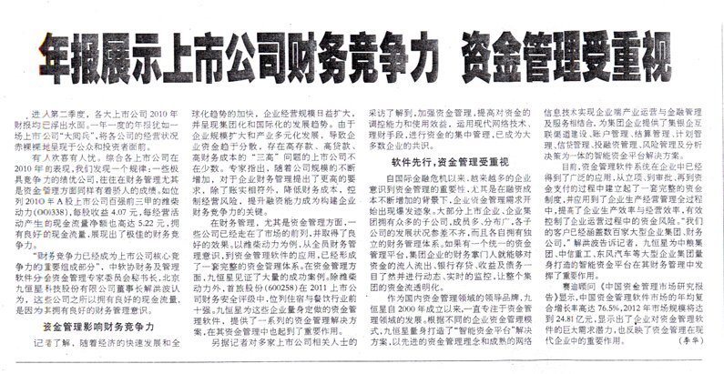 案例赏析—年报展示上市公司财务竞争力 资金管理受重视(四川经济日报)