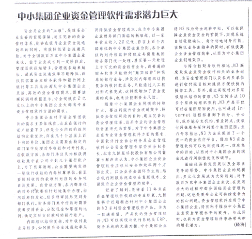 案例赏析—中小集团企业资金管理软件需求潜力巨大(中国产经新闻)