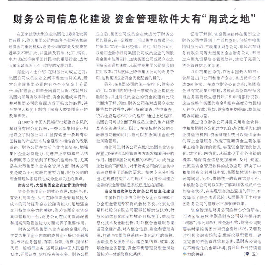 案例赏析—财务公司信息化建设资金管理软件大有“用武之地”(中国贸易报)