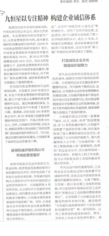 案例赏析—九恒星以专注精神 构建企业诚信体系(国际商报)