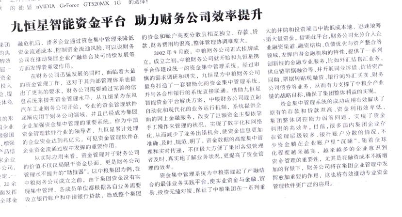 案例赏析—九恒星智能资金平台 助力财务公司效率提升(赢周刊)
