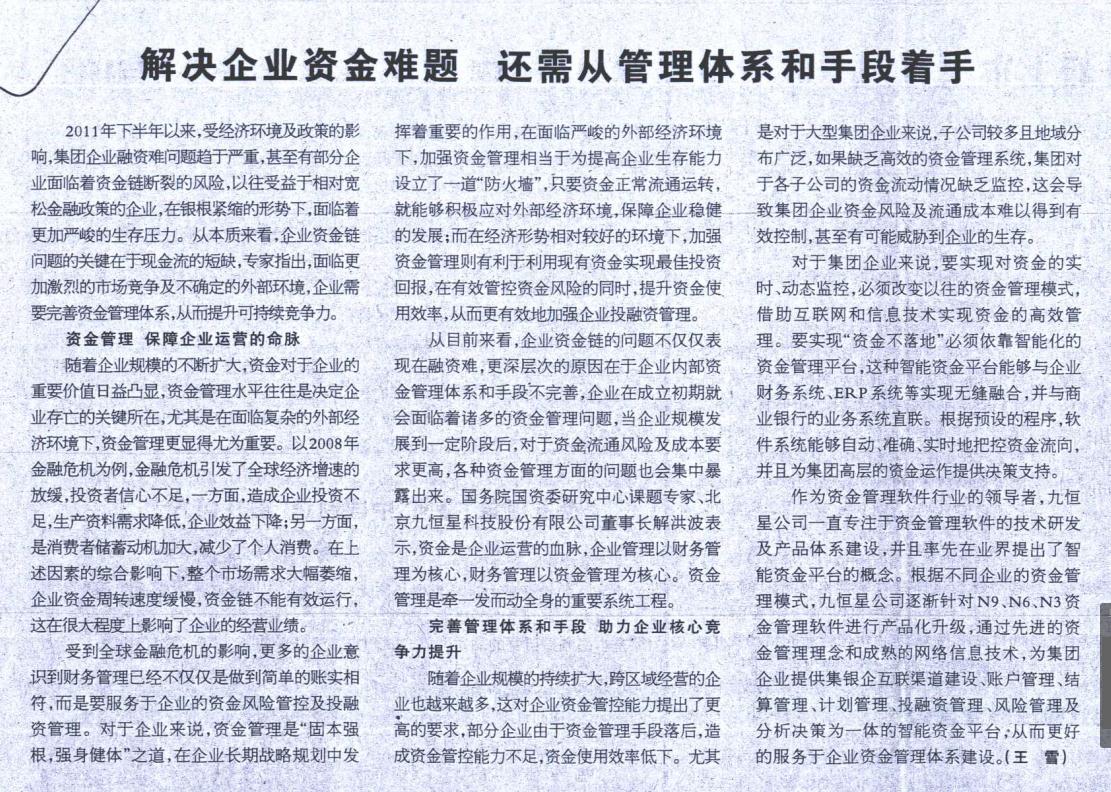 案例赏析—解决企业资金难题,还需从管理体系和手段着手(中国贸易报)