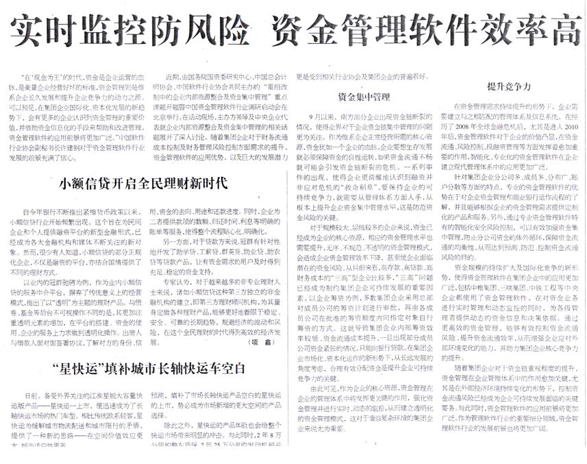 案例赏析—实时监控防风险 资金管理软件效率高(中国商报)