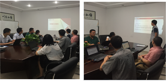 思凯科技总经理周金龙、副总经理顾涌洪对2016年上半年工作进行了系统的总结,首先充分肯定了各部门、各位同事上半年取得的工作成绩,同时也要求各部门负责人及业务骨干就上半年工作情况和下半年工作计划进行全面汇报及深入讨论。