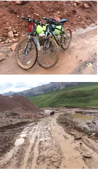 刚刚出县城一公里路况就成这样了 ,这是菩萨要考验“小九星哥”与宝宝们进藏的诚意吗?!开弓没有回头箭哪,走着吧!!!泥泞的考验之路还在继续!!!终于登上了曲里拉山口,氮素……垭口路只有更糟。小歇了一下,宝宝们的战斗热情又燃了,目标西藏,出发!!!下山路段的风景一下子好了起来。就像九恒星16年的奋斗历程,不也是一程艰苦一程收获吗!奋斗ing!山下的路况也好不到哪去,一起推车走吧,战车都泥垢的不要不要的了!但是,星哥还尤有心情的拍了张路边开得灿烂的油菜花。跟泥萌说,一定要给星ge点个赞哪,嘿嘿!这天气看着是辣么的好哇!氮素,从尺犊镇出来就突然遇到一场暴雨!还有豆子大的冰雹啊!宝宝们好辛苦哇,要不说只有20%的人才能完成骑行计划呢!!!好在后面的路虽然更陡了,氮素却不那么泥泞了。为了把九恒星的旗帜胜利的插到终点,继续前进吧。意外的看到了雪山,宝宝们一下燃了!!!幸福来得太突然,宝宝们的努力与诚心得到了回报哟!!在荣布镇休整后,星哥与宝宝们满血复活,继续上路。一路上天气好得不像话,还看到一片美得不要不要的紫色花田。氮素这路况吗,星哥与宝宝们还是欲哭无泪呀!九恒星的战旗胜利到达了岗拉山口。从夏曲镇出来这雨就哗哗下大了,氮素,前方的风景还真是很神奇的不错哟!奔着蓝天白云前进喽!又到达了巴桥拉山口。回望来时的高原草场,星哥跟宝宝们的成就感绝对是满满的!“欧也欧也欧也”这是今天的第三个山口,拖古拉山口。谦虚的说,这一天爬三座山也是没谁了。尤其是辣么难走的泥路,还有暴雨、冰雹哇!!!星ge为自己还有宝宝们点赞喽!!!