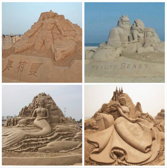 周六,踏着清晨的曙光,驱车数小时,我们来到美丽的东戴河银泰水星乐园。海滩上一座座沙雕十分精致。