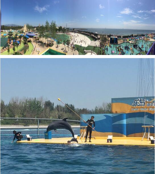 第二天天公作美,在蓝天白云下的乐岛海洋公园大家体验了更多水上项目,观看了海豚表演。