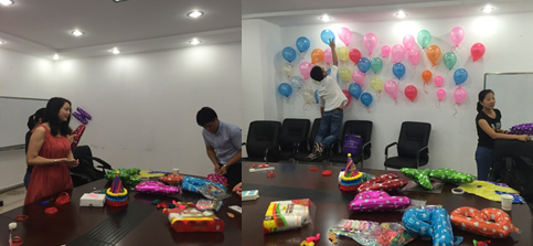 9月23日下午一群“不务正业”的年轻人用气球、彩带、水果、饮料等把会议室装饰成了五彩斑斓的轰趴场地,跪迎各位小主的光临。从那每一件都精心挑选与细致布置的小饰品中,从那一份份凝聚着浓浓情意与默契知心的礼物中,我们看到了真诚与情谊。正是这份浓浓的“情”点燃了我们平时深埋于内心深处的感动。此时此刻,在我们眼中只有那绚丽的色彩与情绪的肆意宣泄,友谊已经成为了这个时刻的主旋律!