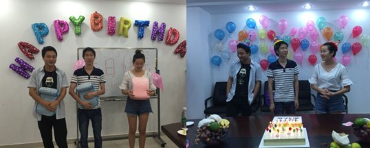 虽然中秋假期已过,但是国庆假期要来了啊!思凯科技准备在给祖国母亲庆生之前,先给公司9月份过生日的人儿庆祝一把!思凯人希望用一个简单的庆祝,让员工真切地感受到公司的关爱,感受到团队的温暖与力量。希望平时忙于工作的大家也能够借着生日会的名义吃吃喝喝、玩玩闹闹,用食量拉近彼此间的距离;更希望通过大家聚在一起侃山、交流的形式,增进彼此了解,促进融合,用胃口传播情怀!