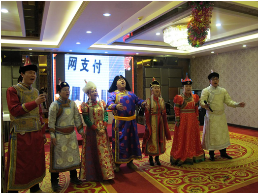 市场部同事为大家带来的草原歌曲串烧,华丽的服饰悠扬的歌声,得到了全场的认可!