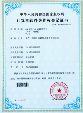 “e融树中小企业融资平台”获国家计算机软件著作权证书