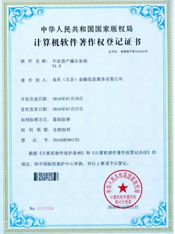 金在【不良资产撮合系统V1.3】获国家计算机软件著作权证书
