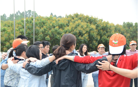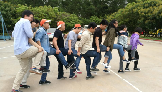 接下来。导游带领大家穿过茂密的丛林小径,来到活动操场,在这里等待我们的罗教练精心为我们准备了趣味拓展比赛项目:“挑战160秒”大家有序的被分成了A/B/C三组,每组分别进行“跳大绳”、“节奏拍”、“开火车”、“吹气球”四项挑战,在160秒内,完成4项挑战花费时间最少的队伍胜出,花费时间最多的队伍每人“奖励”100个俯卧撑。为了取得胜利,各小组憋足了劲,进行了紧训练和团队出场顺序的调整。值得特殊提及的新同事们,从上车前一刻还带着些许陌生到此时的团结一致,火力全开,真真是有着超强的适应力和团队凝聚力,当然我们老员工也做好了带领的作用!(看图便知)