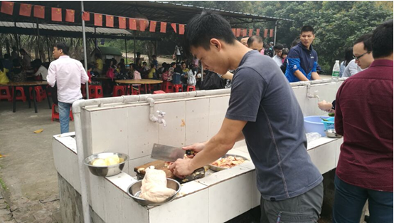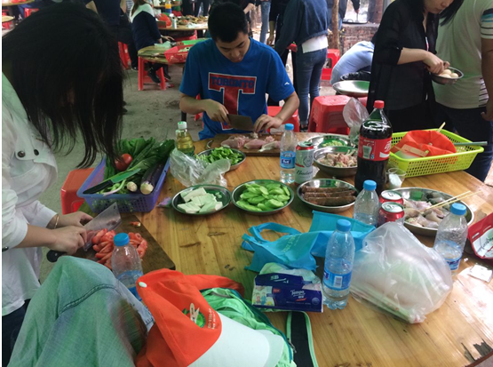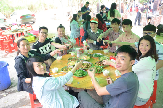 俗话说,男女搭配干活不累!一顿香喷喷的饭菜就在轻松惬意的氛围中上桌啦!大家迫不及待地互相分享起各组的美食。这快乐的制作过程,也在大家的干杯声中一起留存在心底。
