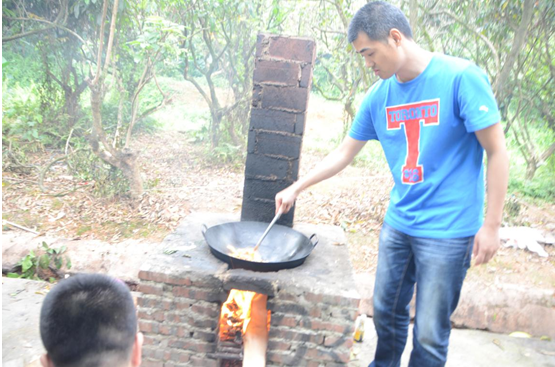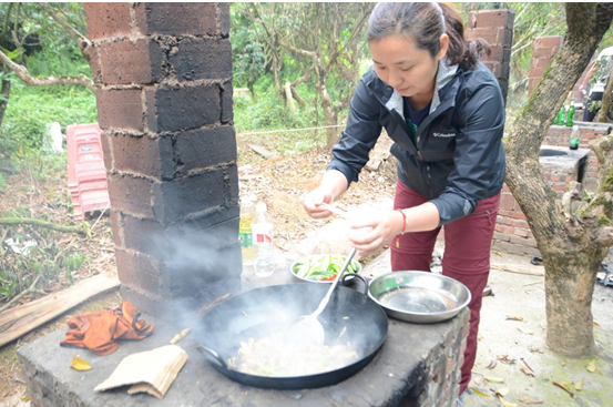 活动结束后,教练和导游带领大家熟悉农庄的场地分布,讲解注意事项,便宣布开始我们此行又一期盼项目——厨艺大比拼!A/B/C各组组长带领组员们领取食材、一起动手劈柴生火做饭!