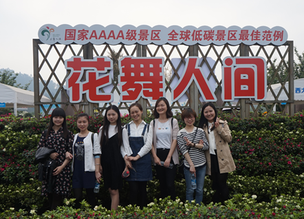 早上在公司楼下集合完毕,经过50分钟的车程到达此次的目的地新津花舞人间。满眼红绿相称,无不诉说春色旖旎,平常腼腆的美女帅哥们忍不住合影留念。