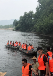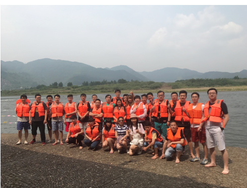 迎着清晨的太阳,经过4小时的车程,到达了风景秀丽的桐庐。桐庐富春江水世界闻名,《富春山居图》中最精彩的一段就是描绘了桐庐的山水,所以旅程的第一站我们就来到了天目溪皮筏漂流。水母相映,泉石争辉,看到如此美丽的风景,大家忍不住赶紧来一张大合影。