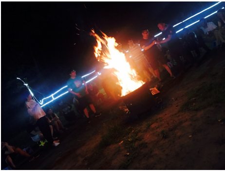 一天的活动下来大家都万分疲惫,晚饭后大家围坐在一圈,在主持人的带领下开始轻松愉快的篝火晚会。大家在星空下做着儿时玩的游戏,充实的第一天落下了序幕。