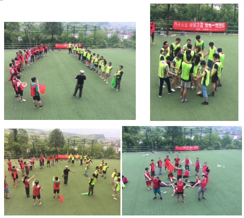 接着大家都来到了本次的拓展基地,展开一场紧张刺激的团队“厮杀”活动。在教练的带领下大家马上展开了第一项任务,各自分成红绿两队,由队长带领开始了实力对抗。每队在最短时间内为自己队伍起名、画出队旗并摆出队形,要保持队中所有女生脚不落地。大家激烈的讨论着、都踊跃的想让团队得第一。