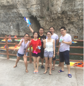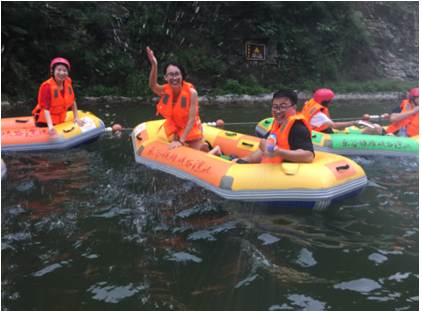 8月12日,九恒星客户运营中心客户运维部的小伙伴们来到北京房山十渡旅游景区开始了一天的疯狂消夏游。小伙伴们到达漂流的地点,穿戴好救生设备,按耐住激动的心情,两人一组坐上小船,屏住呼吸,只待工作人员将漂流筏放手的一瞬间,尖叫四起的兴奋与激动。然而这只是开始,每到达一个搁浅点,除了小船溅起的水花,还会有不明来路的水流扑面而来,认不认识的,泼了水再说,水枪不给力,用瓢舀着泼,没有工具的,头盔直接拿来使,更嗨的当属亲自下水掀船的“捣蛋鬼”,激起层层浪花,整个水域,充满了欢声笑语。大家玩的不亦乐乎!