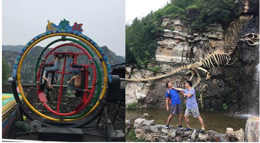 第二天,大家早早动身爬山看月老石,这里除了看山、看风景,还有各种惊险刺激的游戏,疯狂大转盘,疯狂转椅,鬼屋......最终真正过瘾的要数争当“空中飞人”了,原谅小编照片难以捕捉,让我们想想从高空中滑落的瞬间,飞起来的快感吧!运维部的小伙伴们各个都堪称英勇之士,没有丝毫不安与恐惧,而是积极面对,迎难而上,和他们平日的工作风格如出一辙,“空中飞人”瞬间的刺激、兴奋与疯狂,让大家忘记了平日的烦忧与疲惫,身心得到了彻底的放松!