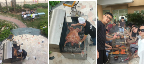 在这如诗如画的环境下,大家迎来了第一顿晚餐-烧烤。思凯科技的小伙伴们是烧烤的能手,在缓缓沉寂的夜色中,每个人都带着兴奋的笑颜,一边享受烧烤带来的乐趣,一边享受着青山绿水下别样的美食。
