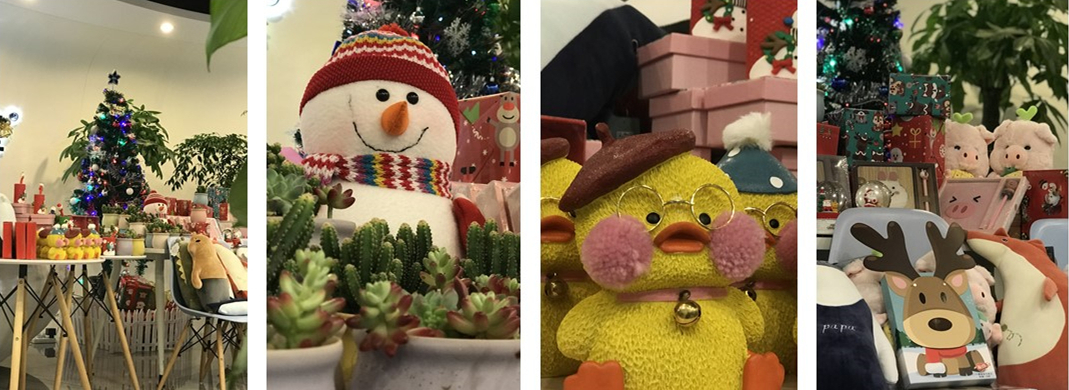 缝有雪白绒球的红色圣诞帽,挂满缤纷彩灯的绿色圣诞树,摆满各式礼物的木制长桌,还有一群兴致盎然不断讨论的可爱人儿……十二月份的北京,冷风吹透了外衣,却丝毫不影响九恒星人火热的内心。