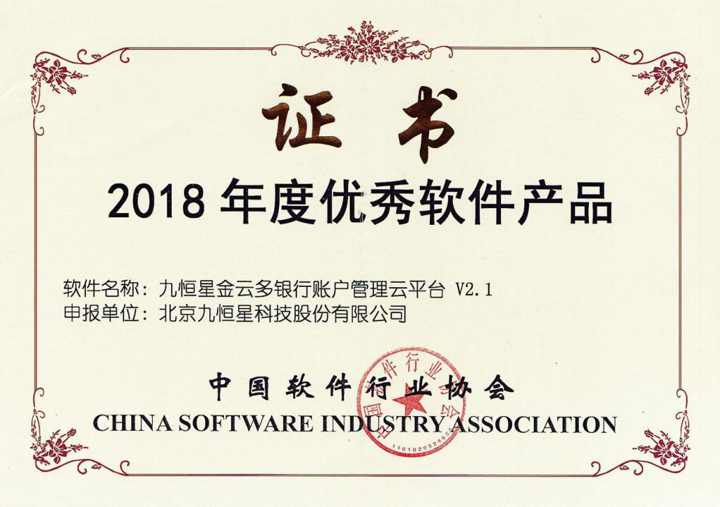 九恒星金云产品喜获“2018年度优秀软件产品”称号