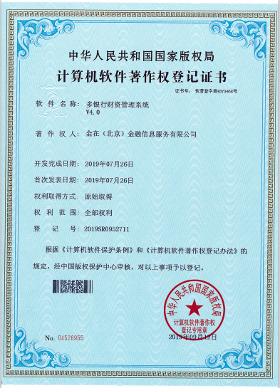 喜讯!金在金服再获三项“计算机软件著作权登记证书”