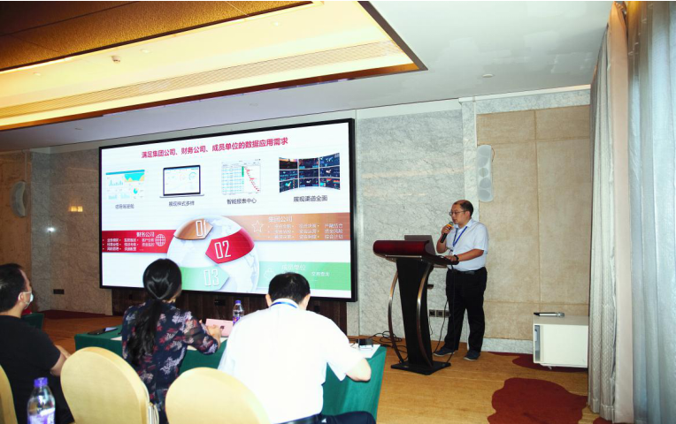 最后是九恒星武汉信息公司高级需求顾问王霖先生为大家带来了关于《一站式金融服务综合管理平台产品介绍》的分享。他从产品特性、应用上细化解说、应用实践举例说明其优势与便利性,使与会者更直观的了解到新一代网银不仅仅是财务公司网银,而是从各单位资金管理需求的角度出发,构建综合管理的平台,在交互体验上,更是从客户在不同业务场景的需求出发,呈现客户需要的信息和入口,无需培训即可使用。