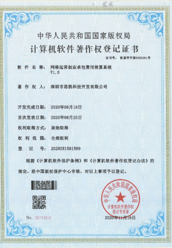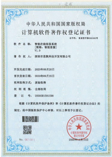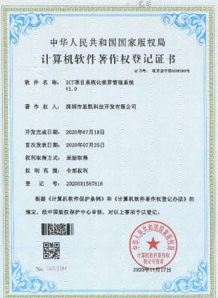 根据《计算机软件保护条例》和《计算机软件著作权登记办法》的规定,经中国版权保护中心审核,中华人民共和国国家版权局对思凯科技的“ICT项目系统化核算管理系统”、“智能在线客服系统”和“网格运营创业承包费用核算系统”三项产品颁发软件登记证书,从颁证之日起,这三项软件的版权将得到中国版权保护中心的有效保护。同时,这也是思凯科技在技术创新方面取得的又一成果。